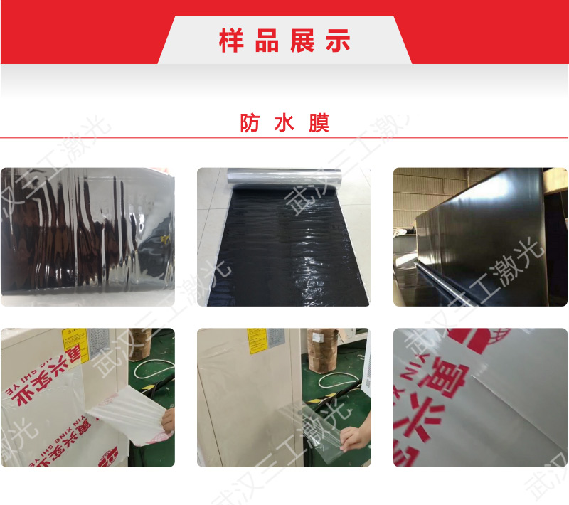 該設(shè)備針對各種PE防水膜,利用激光的熱效應(yīng),無接觸的對薄膜進(jìn)行燒灼。薄膜上劃線全透、半透均可控制,能量隨速度變化保證變速時(shí)加工效果的一致性。