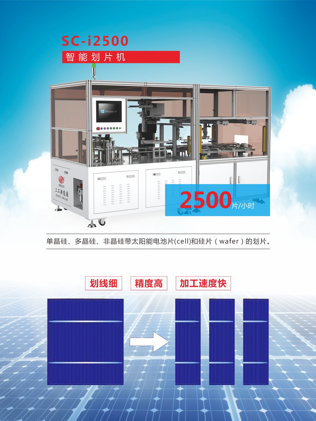該型自動劃片機解決的痛點是招工難,人力成本高的問題。自動上下料,自動定位劃片,極大節省人工。按照1人照看2臺機器,小時產量接近4000片,可以達到4個熟練工人的產量。該設備適用任意大小的電池片激光劃片,產能高、可達1800整片/小時;效率高、速度快、省人工,自動上下料;設備成本低但是劃片質量好。更多型號持續研發中。